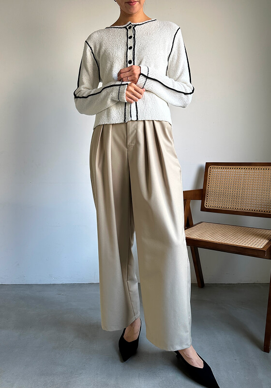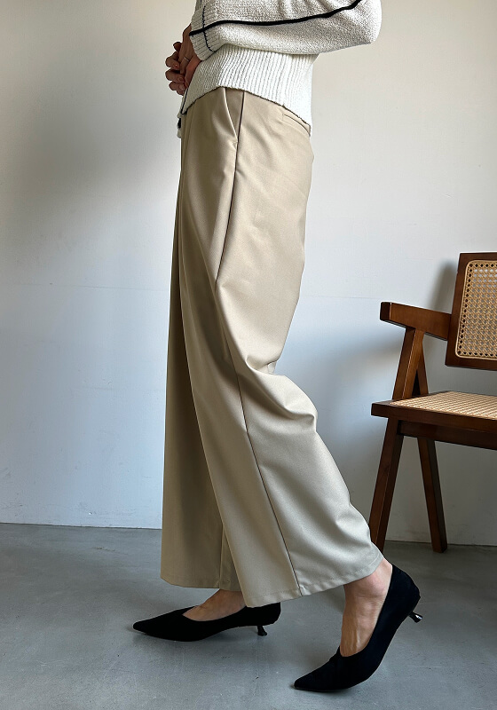 凛と、美しく。シルエットで魅せるワイドパンツ。 立体的なツータックが生む、上品な落ち感。 オンオフ問わず活躍する、春の定番に。