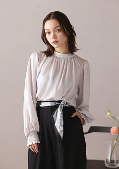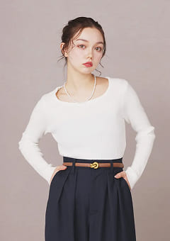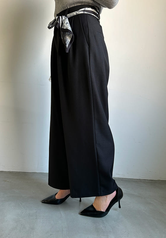 ひと巻きで差がつく、都会派ワイド。 腰まわりを彩るスカーフデザインが主役に。 シンプルなトップスでも洗練された印象へ。