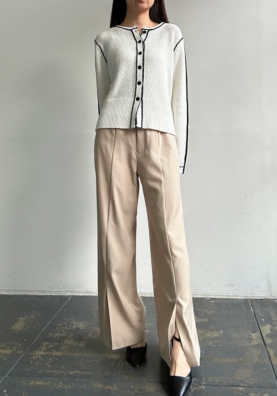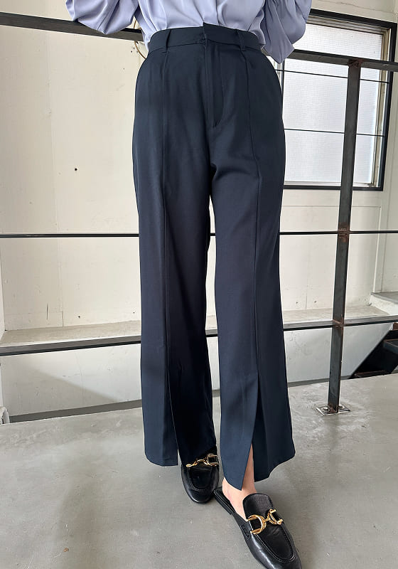 すっと伸びる、美脚ストレート。 センタープレスと裾スリットで軽やかに。 きれいめにもカジュアルにも対応。