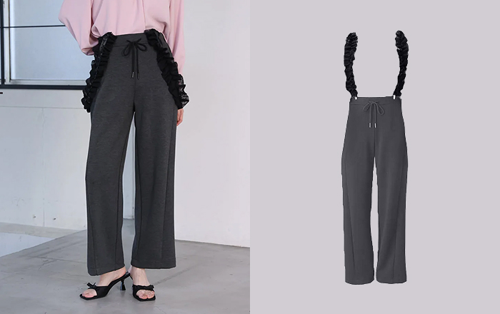 ひと癖あるチュールサスペンダーで、日常に遊び心を。視線を上に集めるチュールサスペンダーの縦のラインで、スタイルアップ。手持ちのアイテムが見違える、主役級パンツが可愛いだけじゃない洗練された美脚を叶えます。