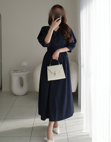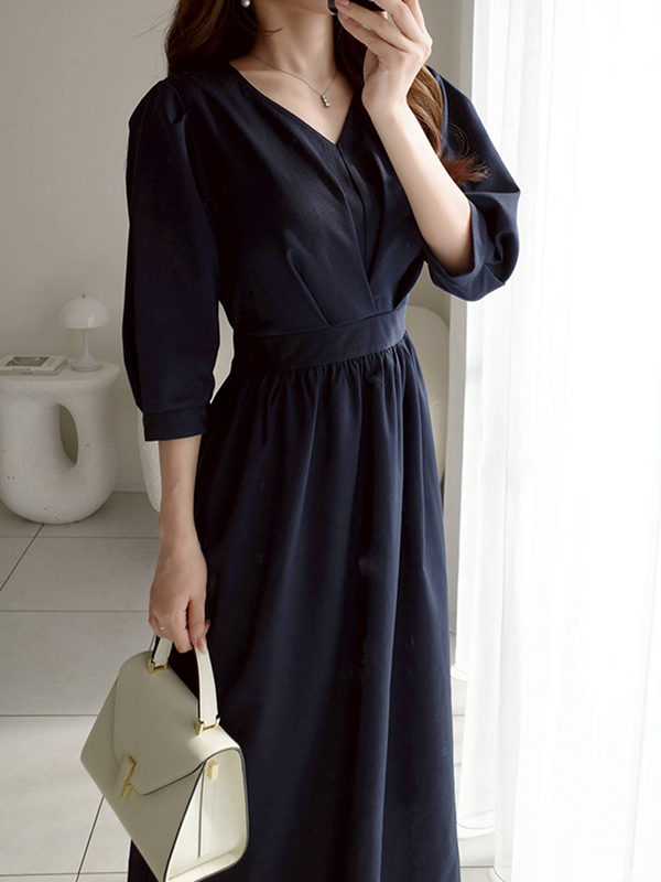 【cho____07セレクト】 Vネックウエスト切替ワンピース