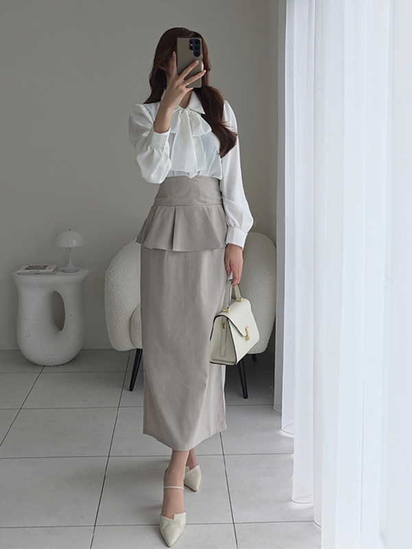 【cho____07セレクト】 ファスナー付きペプラムナロースカート