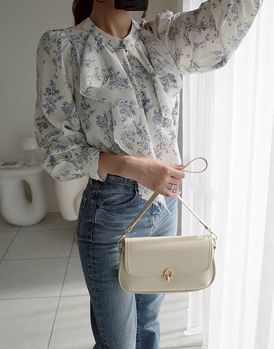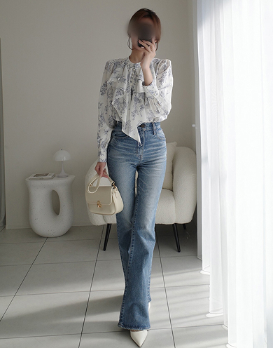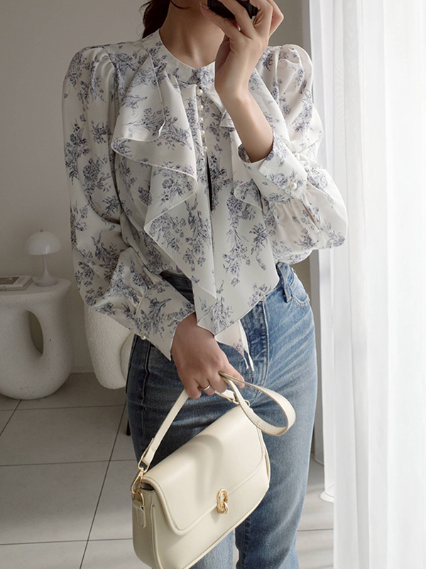 【cho____07セレクト】 フラワープリントパールフリルブラウス