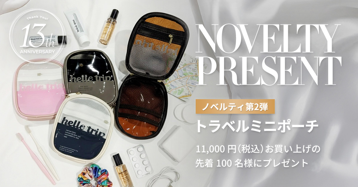 11,000円以上お買い上げの先着100名様にトラベルミニポーチをプレゼント。なくなり次第終了。