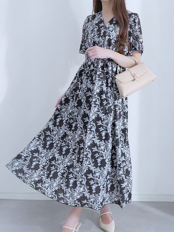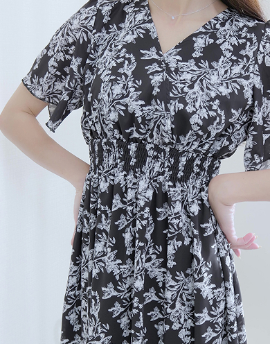 【MARIAセレクト】 フラワープリントウエストシャーリングワンピース