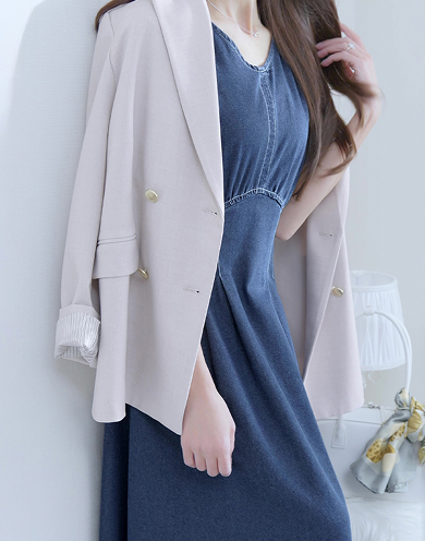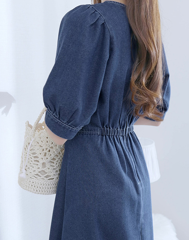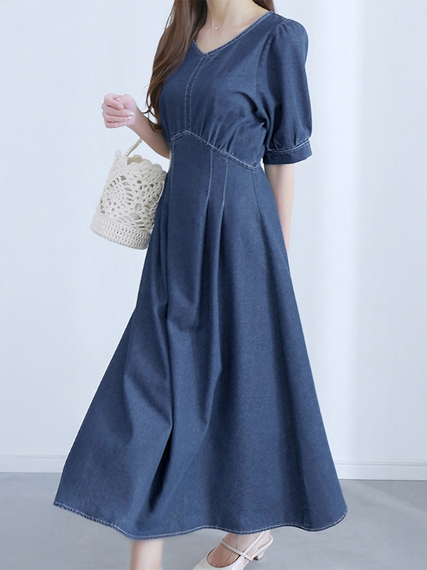 【MARIAセレクト】 ウエスト切替Vネックデニムワンピース