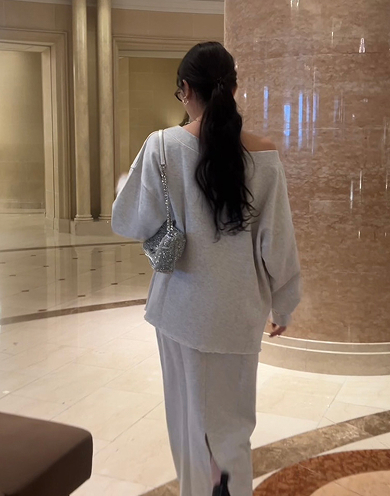 【honoセレクト】 【SETUP対応】裏毛ボートネックプルオーバー