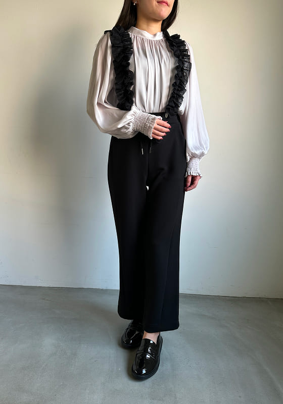 大人に効かせる、軽やかな遊び心。 チュールサスペンダーで旬のレイヤードを。 外しても着られる、着回し自在な一本。