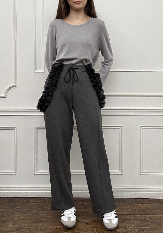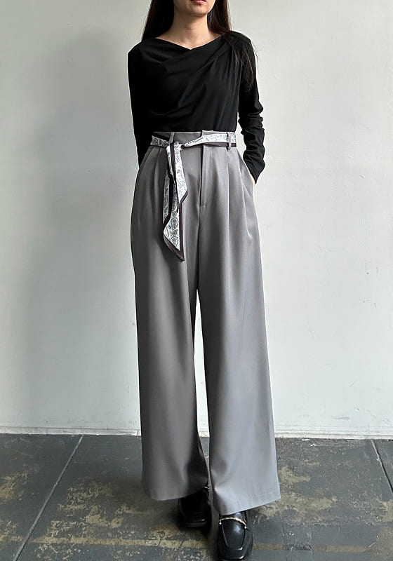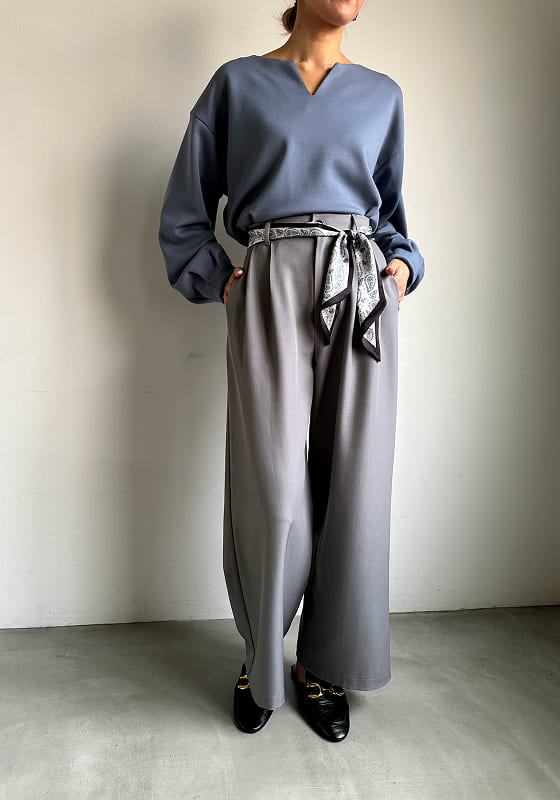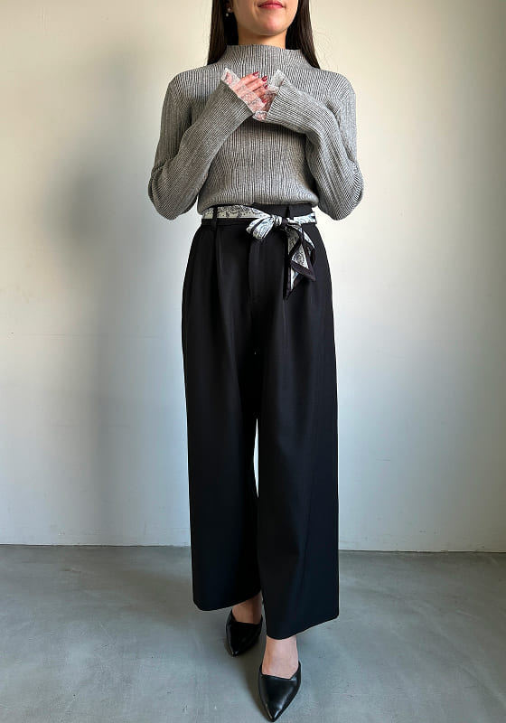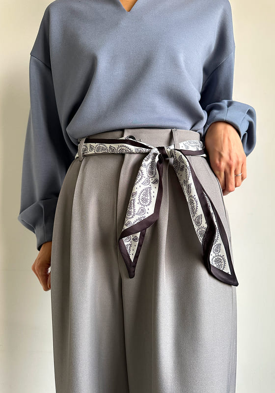 ひと巻きで差がつく、都会派ワイド。 腰まわりを彩るスカーフデザインが主役に。 シンプルなトップスでも洗練された印象へ。