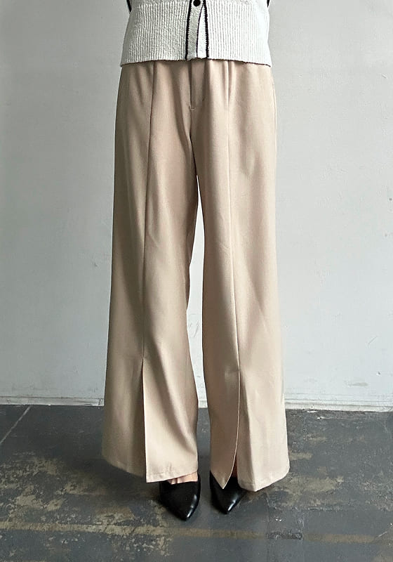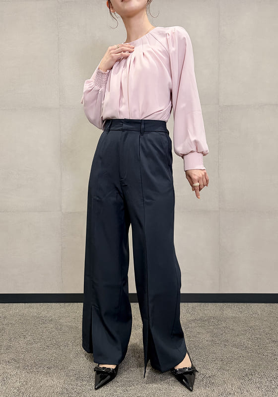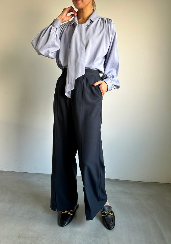 すっと伸びる、美脚ストレート。 センタープレスと裾スリットで軽やかに。 きれいめにもカジュアルにも対応。