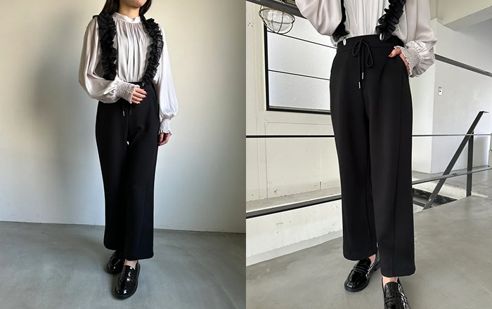 「今日は少しシンプルに」という日は、ベーシックなワイドパンツとして。